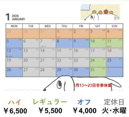 1月13日~23日は冬季休業です。